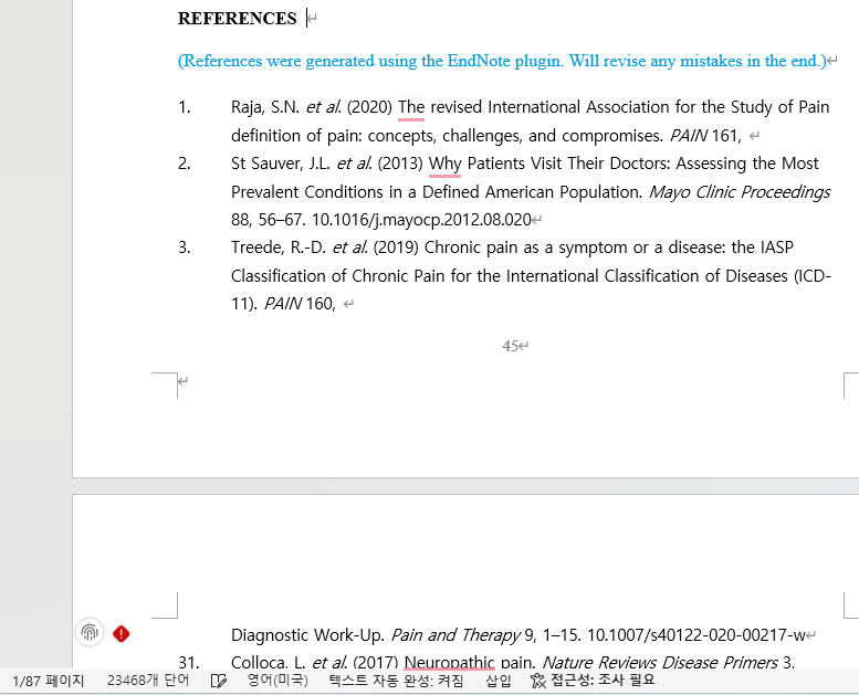 난 이미!! 레퍼런스 제외 45페이지째 쓰는 중이었는데요?!! (Times New Roman & 12pt & Double spaced)